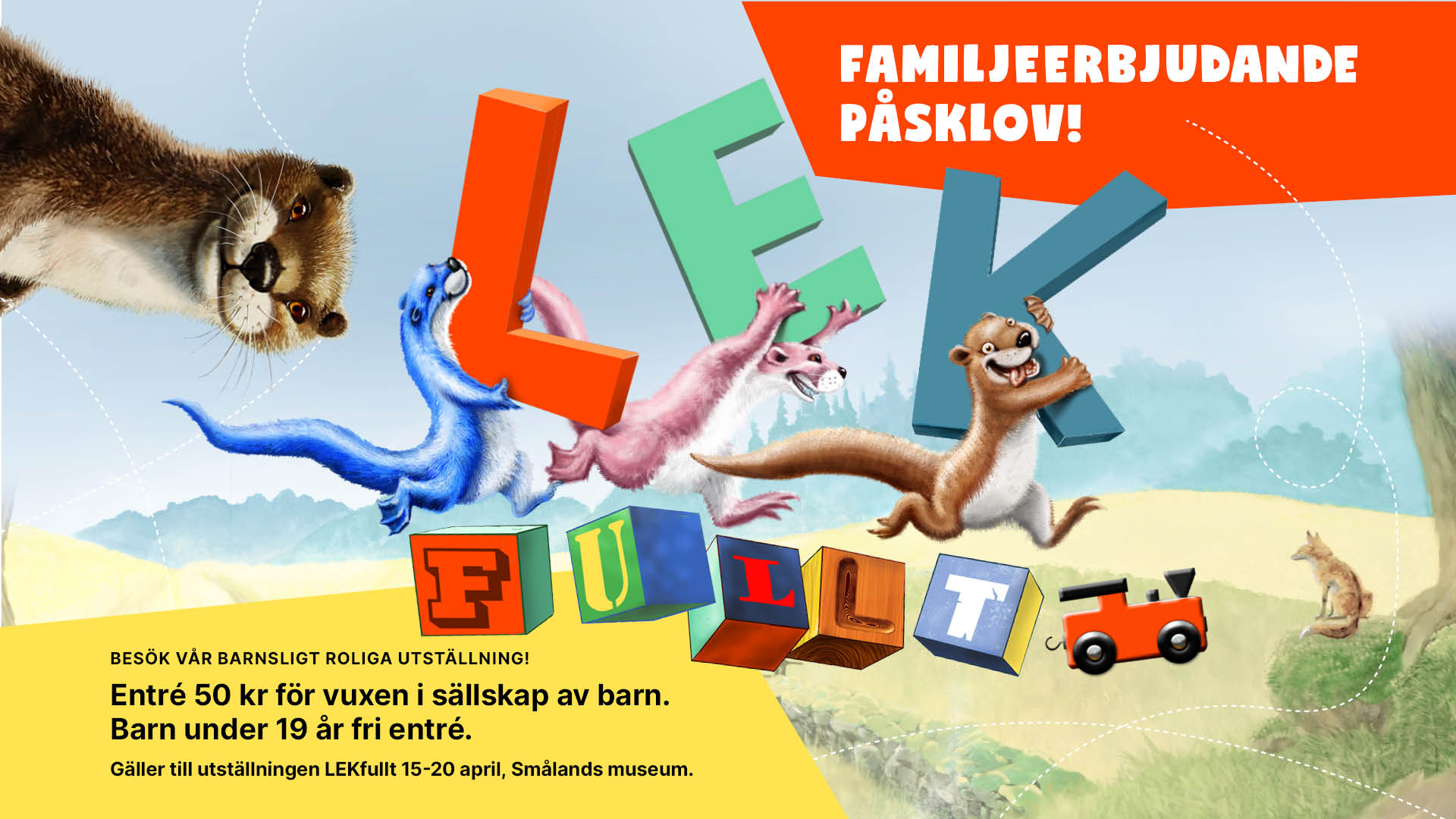 Another creature that likes to play is the otter, the animal that represents Småland. The otter is your mischievous companion throughout the exhibition. There’s something fun waiting around every corner, and before you know it, you’ll have learned a lot about toys and play.